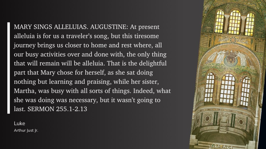 Catholic tradition emphasizes the value of both active service (expressed by Martha) and quiet contemplation (exemplified by Mary). The Church teaches that these two aspects are complementary and necessary for spiritual growth and genuine discipleship. As Pope Benedict XVI noted, “Martha and Mary are the two faces of love for God and neighbor: service to the point of self-sacrifice and contemplative love.” (General Audience, September 15, 2010)