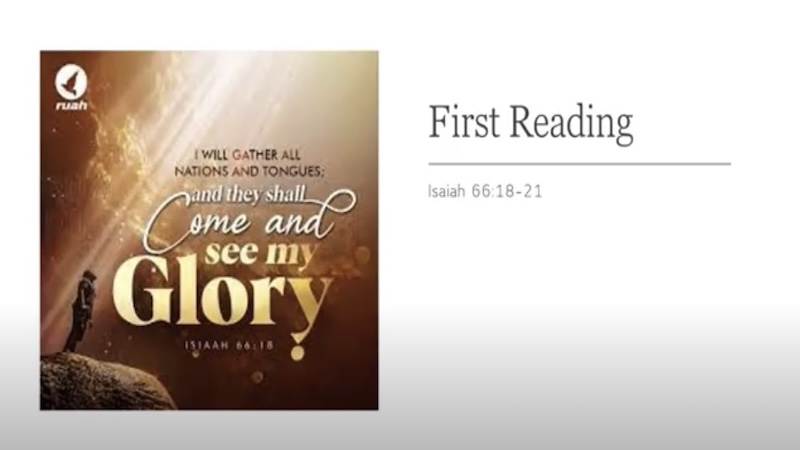 Connecting to the Gospel: Fr. Galetto explicitly connects this reading to the gospel, noting that Isaiah’s prophecy of a universal appeal of salvation foreshadows Jesus’s message that “people will come from the east, and the west, from the north, and the south” to recline at table in the kingdom of God.