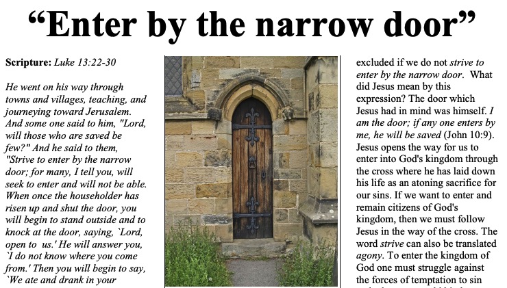 - How does the image of the “narrow door” change your understanding of a Christian life?