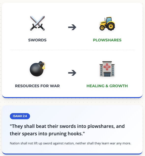 That our political leaders may heed the divine instruction to beat their swords into plowshares and their spears into pruning hooks, transforming weapons of partisan hostility into tools of common cultivation, so that they may no longer learn war against one another but walk in the paths of peace. We pray to the Lord…
