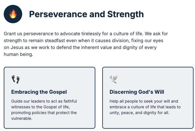 Almighty God, we ask for strength to remain steadfast in promoting a culture of life, even when it causes division, fixing our eyes on Jesus, as we work tirelessly to defend the dignity and value of every human being. We pray to the Lord...