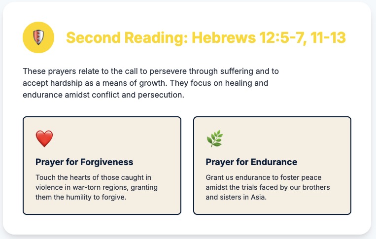 Grant us, O God, the endurance to foster peace amidst the trials and persecutions faced by our brothers and sisters in Asia. Sustain us as we strive to heal division and spread your message of love. We pray to the Lord...