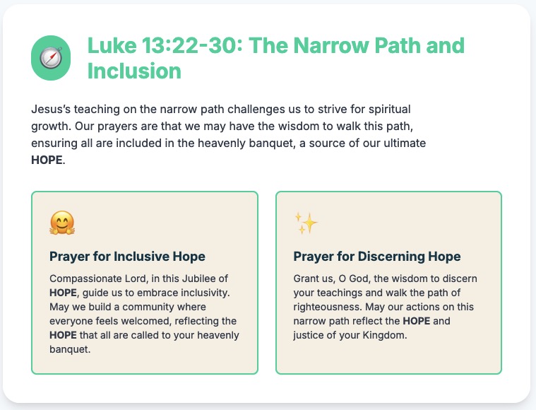 Lord, in this Year of Hope, grant us the strength to forgive those who have wronged us, healing our wounded hearts. May our journey towards reconciliation be a testament to your divine mercy and love. We pray to the Lord...