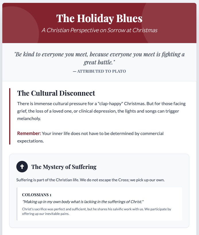 PATRICK COFFIN SHOW (13:56) – During this Advent season, help for those who are suffering from holiday blues.