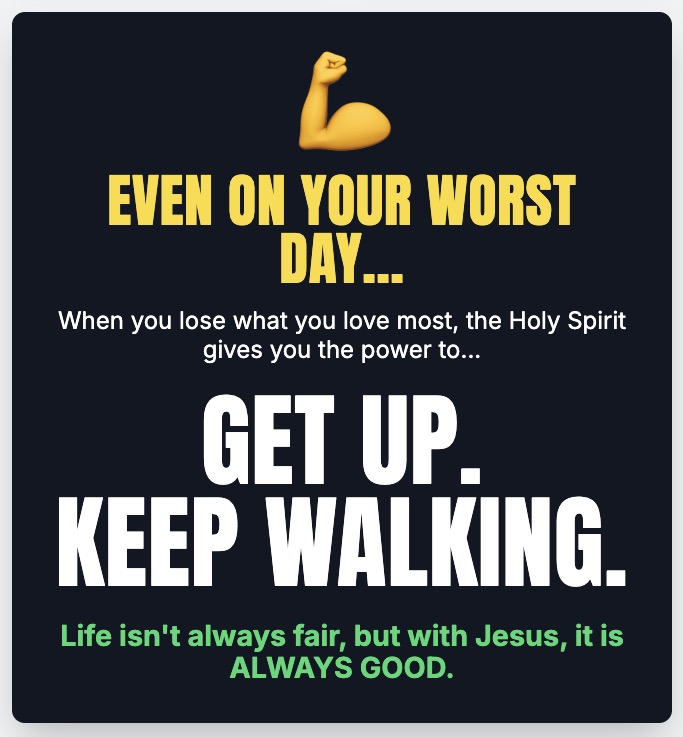 For all who are experiencing an “end of their world” who feel they have lost everything; that they may feel the power of the Holy Spirit who raised Jesus, and be given the strength to persevere: to get up, get out of bed, and keep walking.