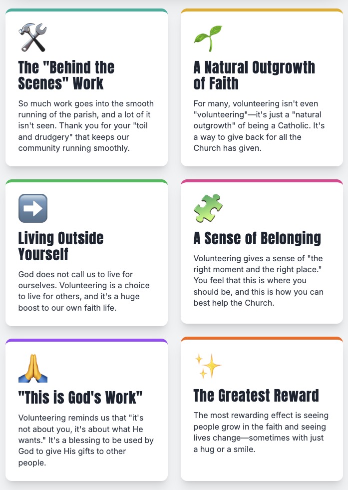 ST. JAMES CATHOLIC, VA (5:24 – Volunteering at a parish is a meaningful way to live out one’s faith, experience personal spiritual growth, and demonstrate Christ’s love and mercy to others