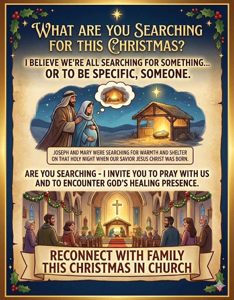 For our parish community, that we may offer warmth and shelter to all who are searching for Someone this Christmas, just as Joseph and Mary sought a place for the Savior. May every visitor encounter God’s healing presence within our walls and answer the invitation to come home for Christmas. We pray to the Lordβ¦