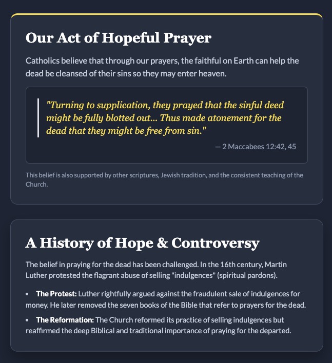 On this All Souls Day,we pray for all the faithful departed, that in the time of their final purification, they may shine brightly and radiate your divine love, like sparks in the stubble. May your divine mercy embrace their souls in their journey towards the eternal light of your presence.