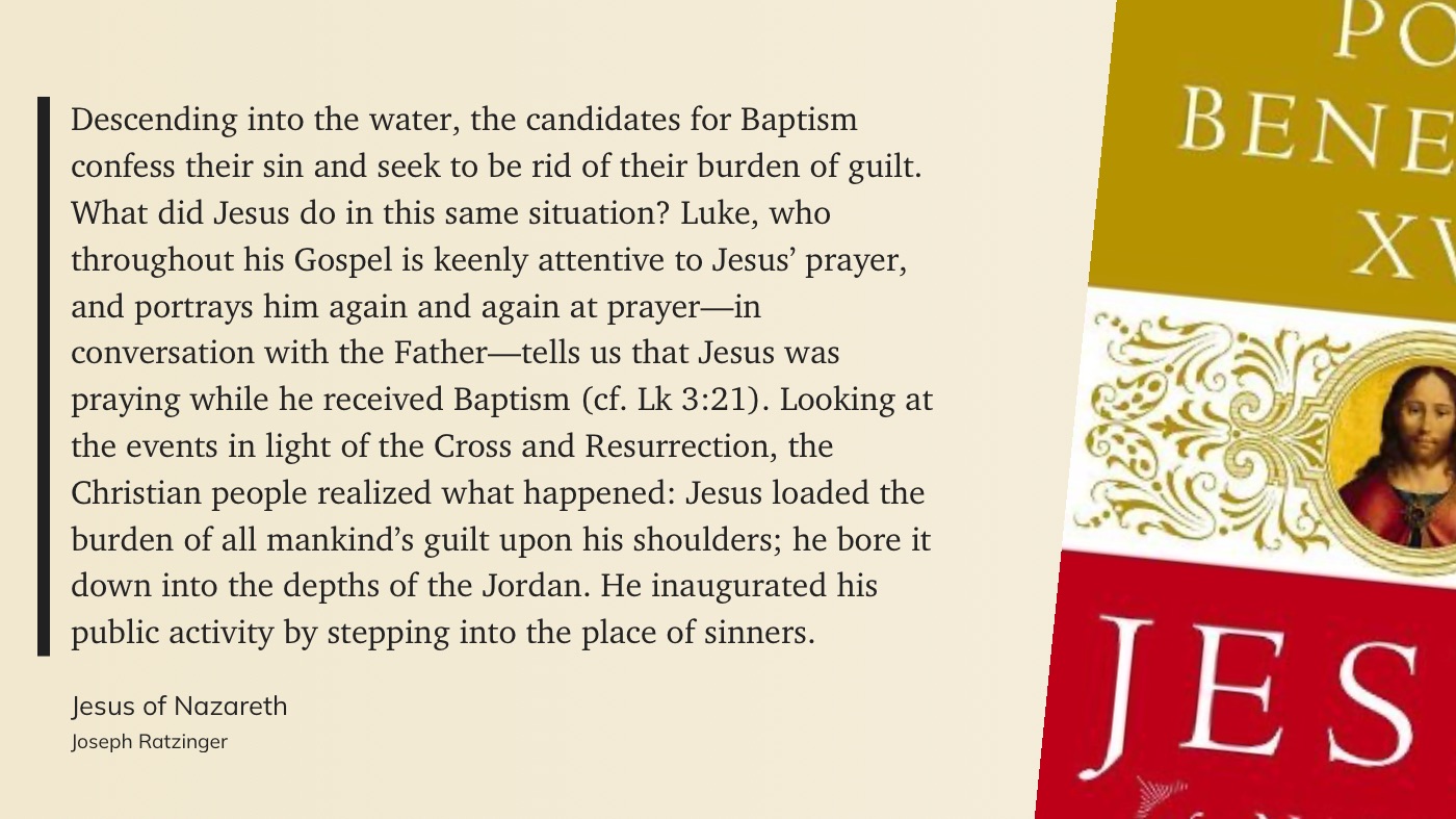 Summary: As we celebrate the feast of the Baptism of the Lord, we should first realize that Jesus didn’t need to be baptized but rather did so in order to give us an example to imitate. Similarly, as stewards we are called to be authentic models of the faith so that others can be inspired by our witness. Moreover, it is extremely important that we avoid anything that may scandal others because this could drive them away from the Church. Let us strive to be true models of the faith.