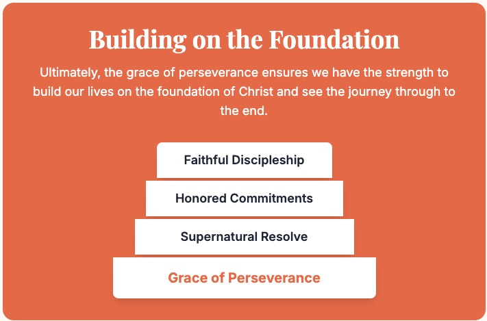 The daily grace of Confirmation is perseverance in faith. When the initial zeal of our conversion fades, when prayer becomes difficult, or when the cross of our daily duties feels heavy, this grace provides the spiritual stamina to remain faithful. It is the supernatural resolve that empowers us to honor our commitments, to resist the temptation to take the easier path, and to continue building our lives on the foundation of Christ, ensuring we have the strength to see the journey through to the end.