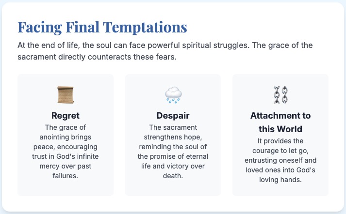 The recovery of sanctifying grace is the “wisdom” and “holy spirit” being sent anew into the soul of the penitent. This infusion of divine life “straightens the path” by healing the wounded will and re-ordering disordered desires. It “teaches what pleases God” by illuminating the conscience with divine truth. It provides the “increase of spiritual strength” necessary to walk the arduous path of discipleship and to carry the cross. As Pope Benedict XVI teaches, the sacrament provides the “indispensable interior energy to overcome the evil and sin” that marks the Christian pilgrimage.9