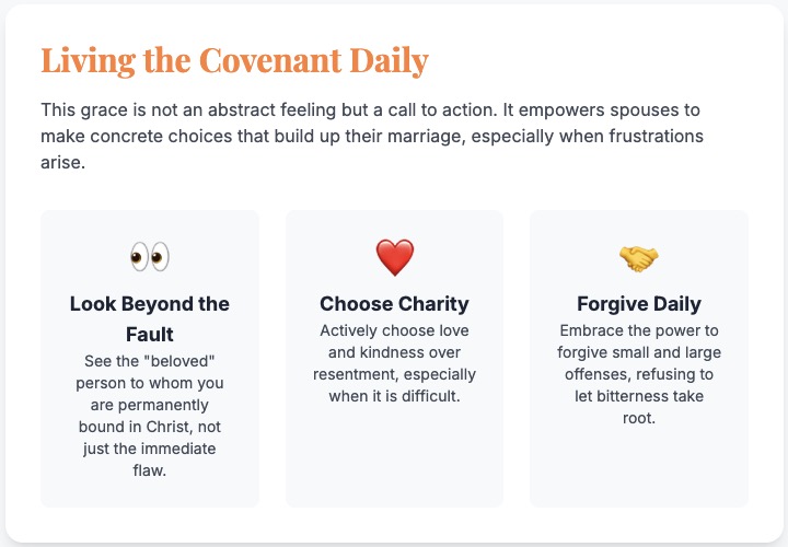 The daily grace flowing from the Eucharist is a profound strengthening of charity. It empowers us to look past grievances and social labels and see Christ in the person next to us. This sacramental communion challenges us to bring reconciliation to our families, workplaces, and divided communities, transforming our relationships from worldly contracts into bonds of supernatural kinship in the Lord.