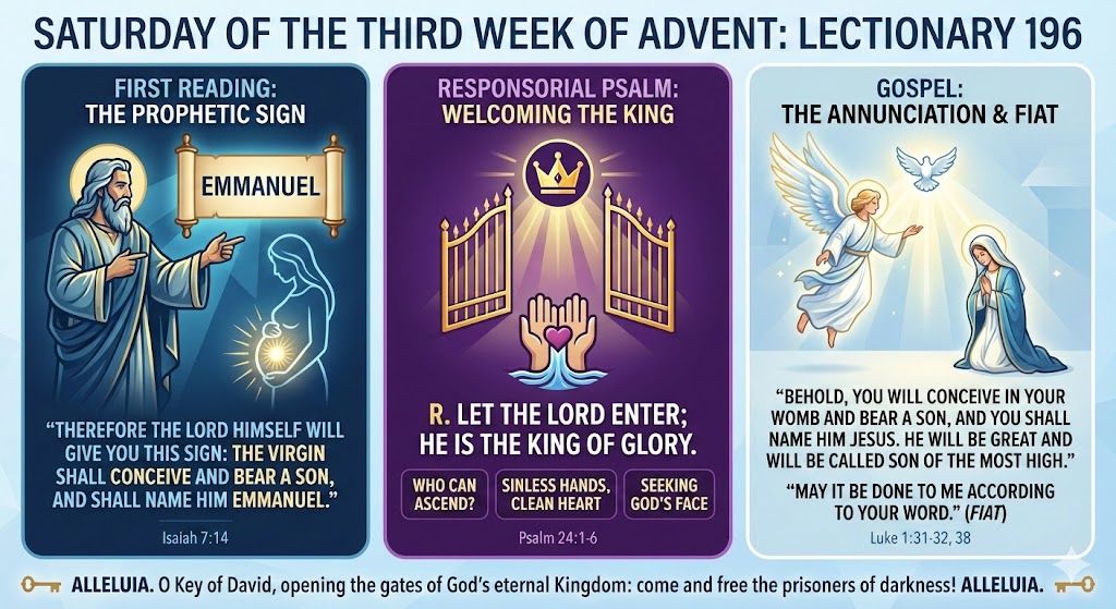 Today’s Gospel describes the story of the Annunciation, explaining how God began to keep the promise He had made to King David through the prophet Nathan, that David’s descendant would rule over the world as its Messiah. The Archangel Gabriel’s salutation to Mary: “Hail, full of grace,” reminds us of God’s words to Moses at the burning bush (Ex 3:12), and the angel’s salutation to Gideon, (Jgs 6:12). Mary is described as “full of grace,” filled with God’s favor and graciousness. She is to be the new Ark, a tent and temple. God will be in her, literally and physically, and thus she will be the greater House God promised to David. Mary’s believing question, “How can this be, since I am a virgin?” is natural. That is why Gabriel reminds Mary, “For with God nothing will be impossible.” God will “empower” her (“the Spirit will come upon you“) and “protect” her (“overshadow you“). Luke’s narrative points out that the Child will not only be a distant grandson of David — He will be God’s own Son. “He will be great and will be called the Son of the Most High, and the Lord God will give to Him the throne of His ancestor David.” Mary does not require confirmation but responds in obedient, humble Faith: “Behold, I am the handmaid of the Lord; let it be to me according to your word” (Lk 1:38) . She agrees to carry out the Word Gabriel has addressed to her.